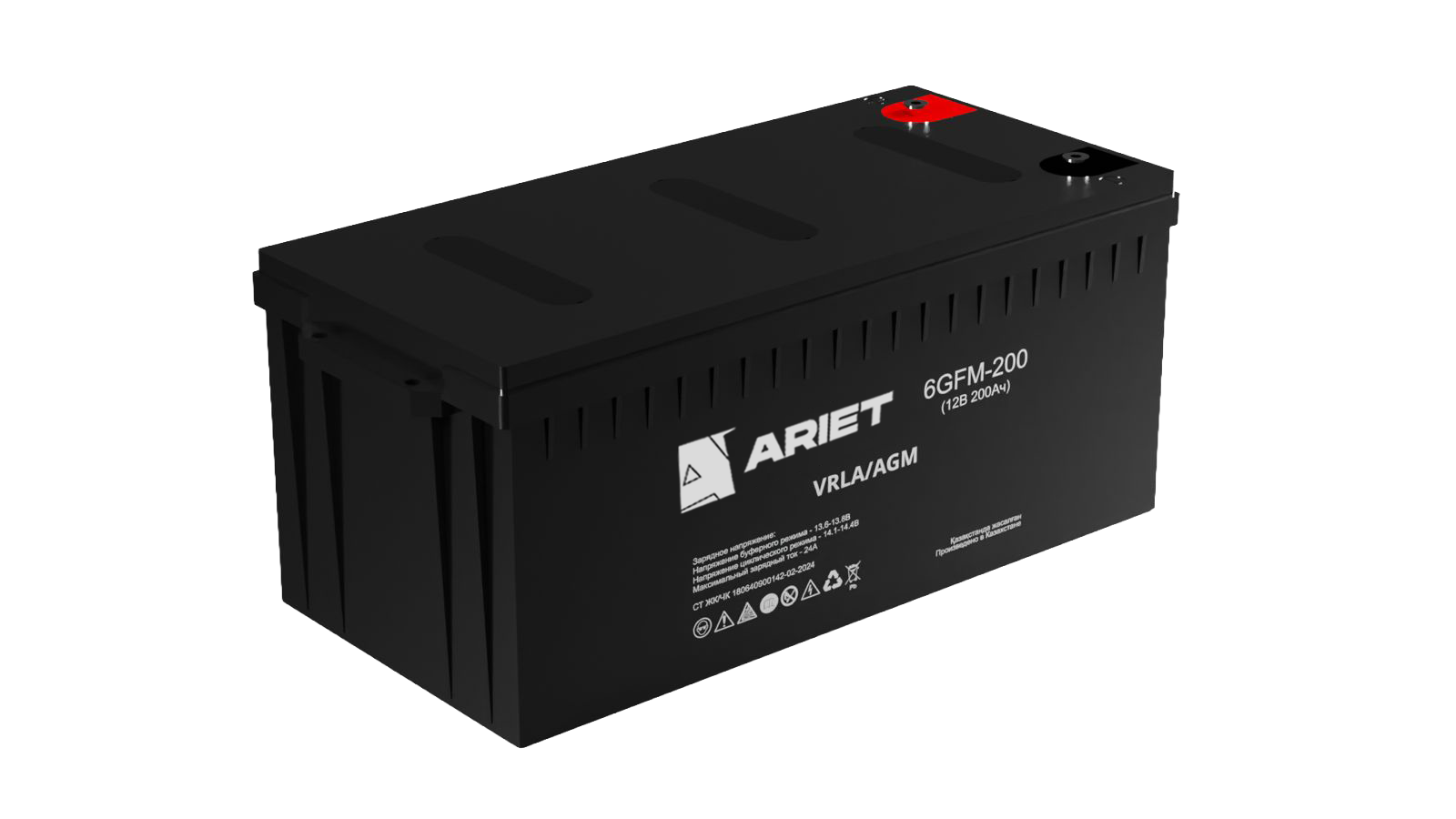 Аккумулятор ARIET 6GFM-200 — герметичная AGM батарея 12В ёмкостью 200Ач, предназначенная для систем резервного питания, ИБП и телекоммуникационного оборудования. Обеспечивает высокую надежность, низкий саморазряд и длительный срок службы.