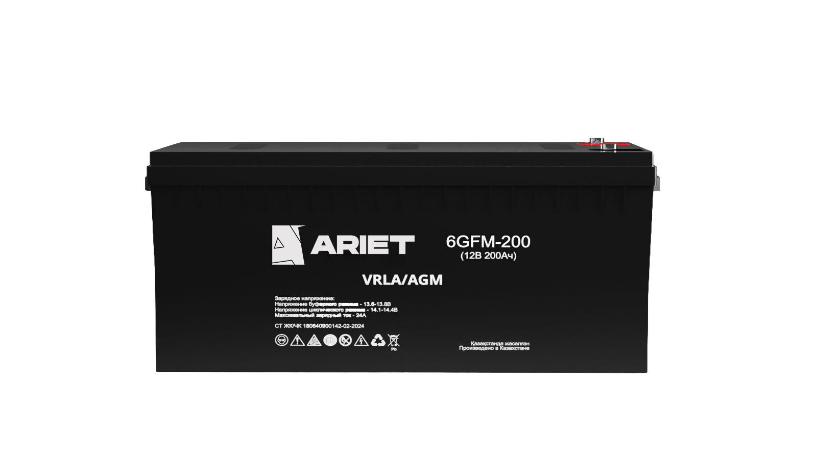 Аккумулятор ARIET 6GFM-200 выполнен по технологии AGM (Absorbent Glass Mat) и предназначен для использования в системах резервного и бесперебойного питания. Герметичная конструкция VRLA обеспечивает рекомбинацию до 99% выделяемого газа, что делает батарею безопасной и не требующей обслуживания.