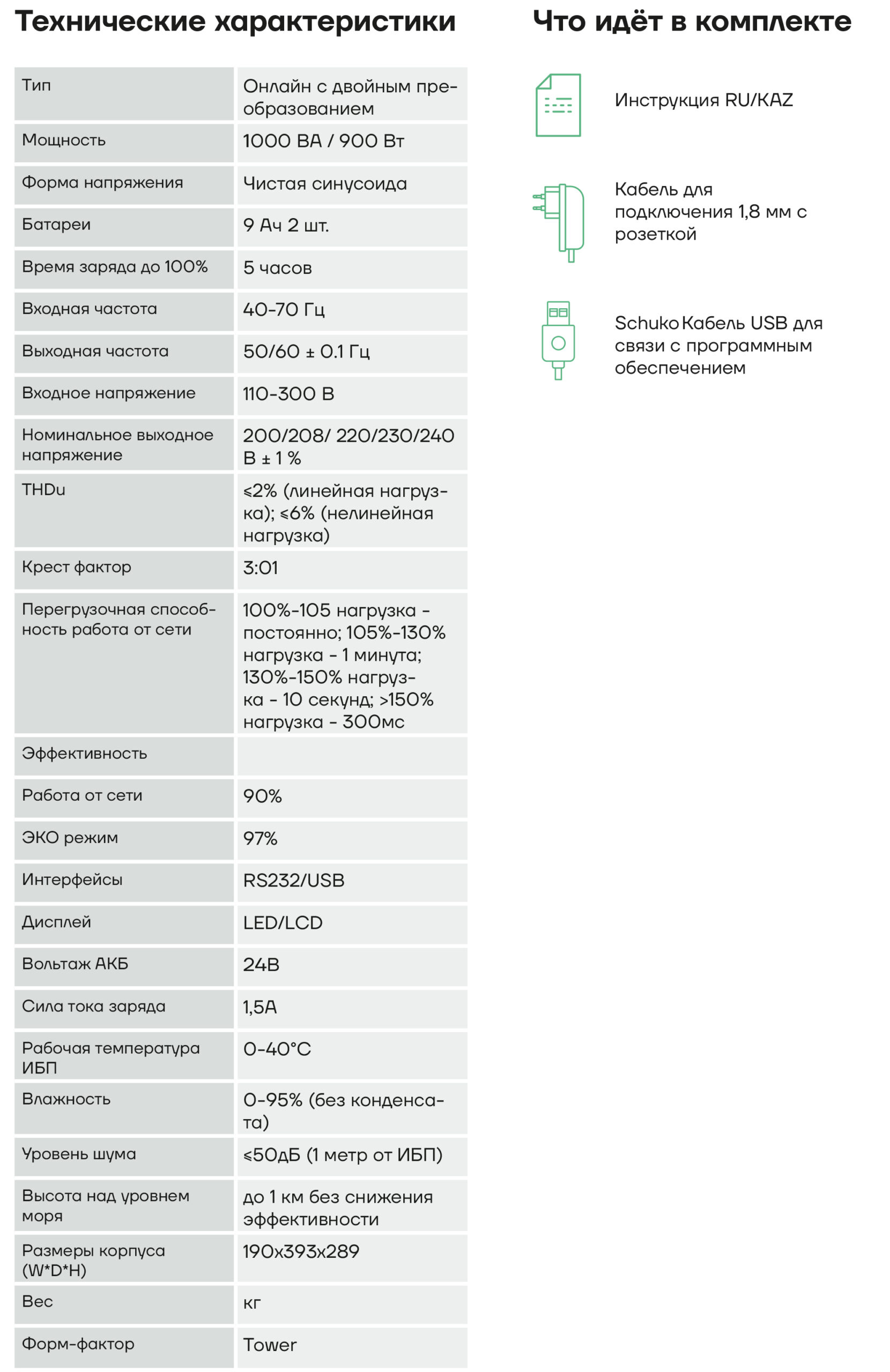 ИБП работает по технологии двойного преобразования: входное переменное напряжение преобразуется в постоянное, а затем обратно в переменное с точными параметрами. Это обеспечивает чистую синусоиду, стабильное напряжение и полную защиту оборудования от скачков, помех и провалов сети. Мгновенное переключение на батареи за 0 мс гарантирует непрерывную работу техники без перезагрузок и сбоев.