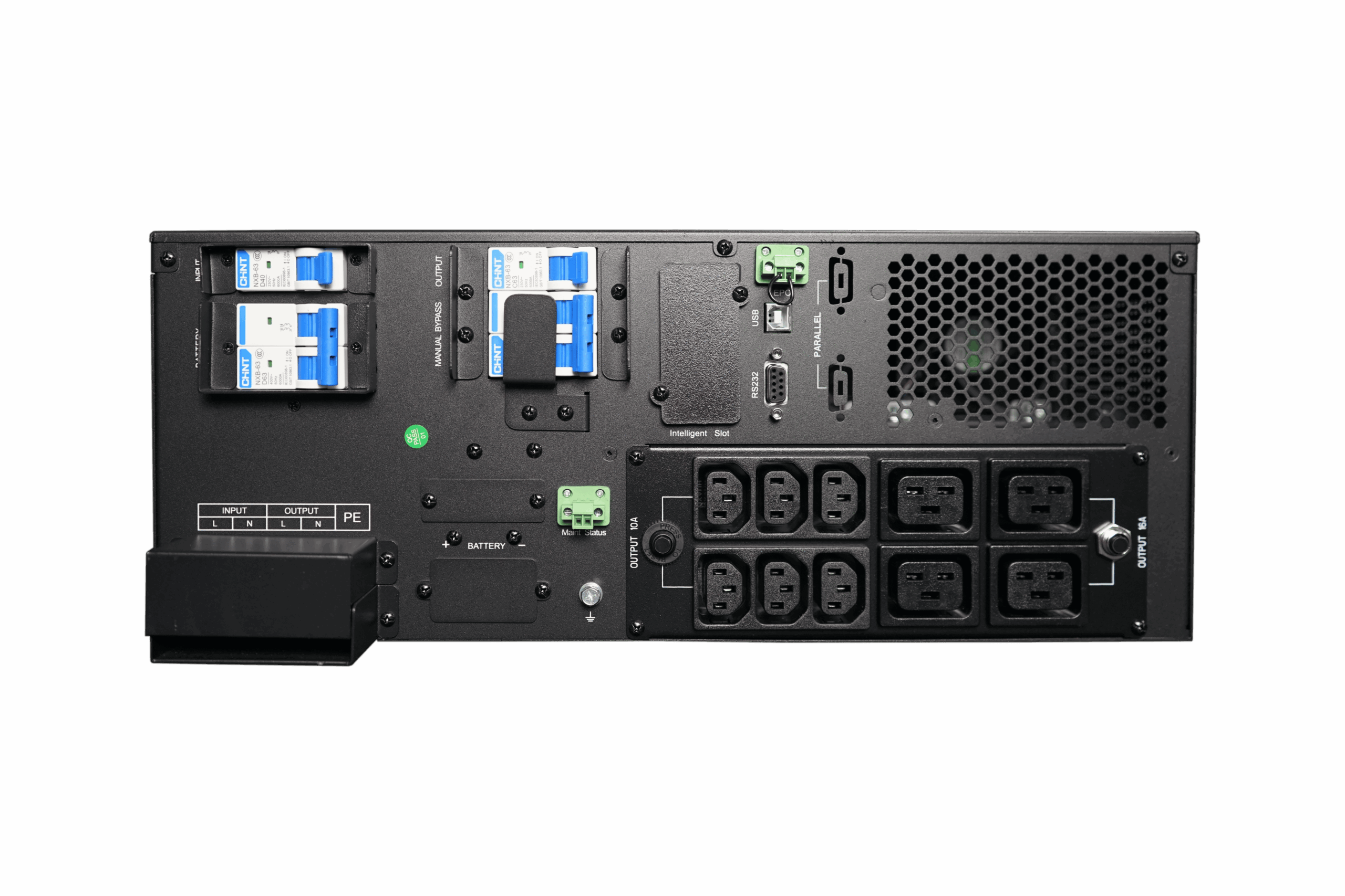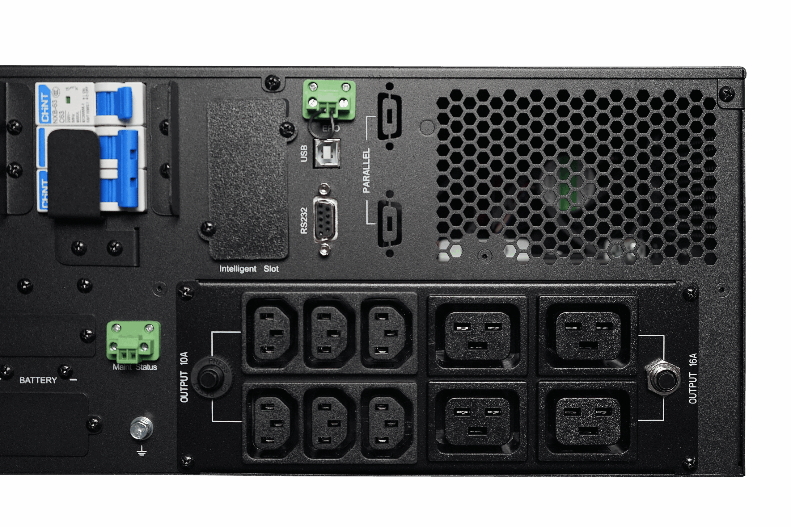 Имея номинальное напряжение 240 В постоянного тока, ИБП оснащен батареями большой емкости, что обеспечивает длительное время работы во время отключения электроэнергии. Цифровая схема зарядки позволяет регулировать зарядный ток от 1 А до 12 А, оптимизируя срок службы батарей и эффективность зарядки. Кроме того, функция холодного запуска батареи позволяет ИБП запускать и поддерживать нагрузку даже без подключения к электросети, обеспечивая критически важное резервное питание в чрезвычайных ситуациях.